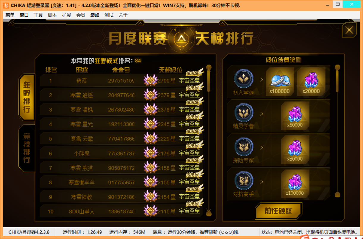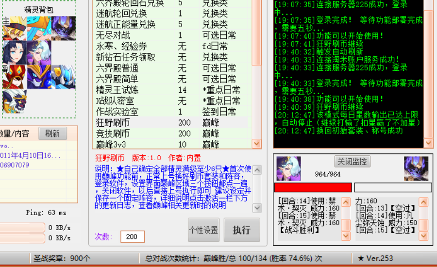 介绍:新时代巅峰脚本,一晚从天骄上圣皇,之后还会不断完善替补精灵出招,解决阵容不齐问题,并且下星期开始测试优化圣皇之上段位。